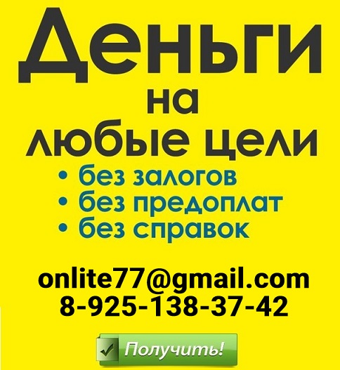 Поможем решить финансовые проблемы уже сегодня! Кредитуем в любой сложной ситуации – от нулевой кредитной истории до черного списка и отсутствия официального трудоустройства. Получение в удобном регионе РФ, в удобном для Вас отделении. Без предоплаты, без комиссий и залога, без страховок и справок. Адекватные условия и низкие процентные ставки! Оплата наших услуг только за положительный результат после получения средств. Заявки принимаем круглосуточно и без выходных на эл. почту и телефону