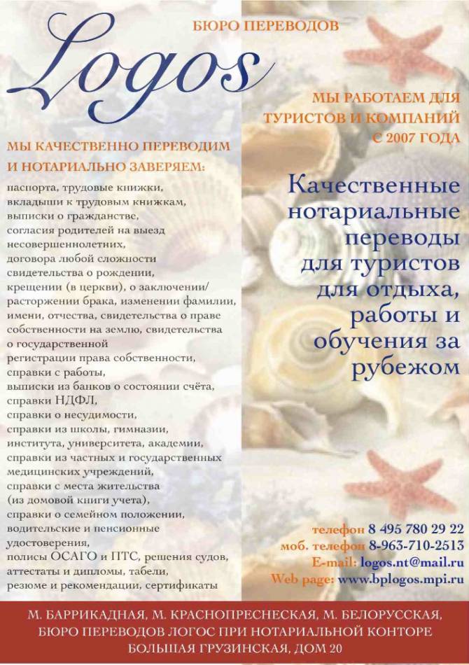 Мы имеем большой опыт работы с иностранными компаниями и представительствами и поэтому мы можем предложить вам не только качественные переводы, но и консультацию по их правильному оформлению для успешного ведения вашего бизнеса в России ! Бюро Переводов Логос при Нотариальной конторе на Большой Грузинской дом 20