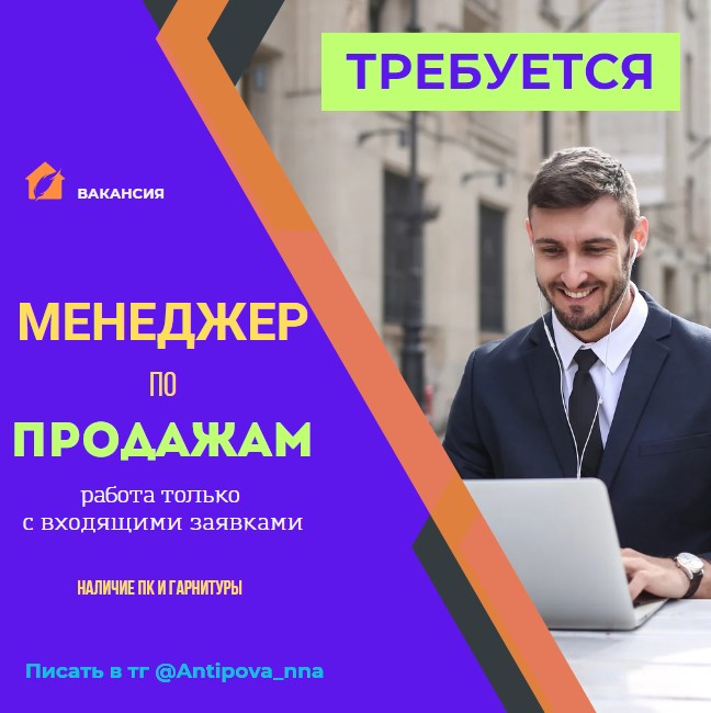 Работа Менеджер по продажам Требуется З/П 80000руб Работа удаленная, График 5/2 с 8:00 до 17:00 Стажировка – 2 дня (обучение с постепенным введением в задачи) Обязанности: Наличие ПК и гарнитуры, Уверенный пользователь ПК Рассматриваем так же кандидатов без опыта. Возраст до 30 лет. Обязательна письменная и устная грамотность. Ориентированность на результат, инициативность и легкая коммуникабельность Обязанности Принимать и обрабатывать входящие звонки от заказчиков. Контроль и поддержка актуальности цены, наличие товаров. Консультация заказчиков по телефону Ведение заявок клиентов до момента оплаты Заниматься развитием клиентской базы (налаживание связи с новыми клиентами и поддержка текущей базы) Помощь топ-менеджерам по обработке заявок. писать в тг